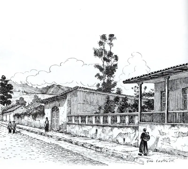 “Ingreso al hospital” plumilla Prof. Guillermo Castro Chávez Foto © Colección Otavalo del Ayer.