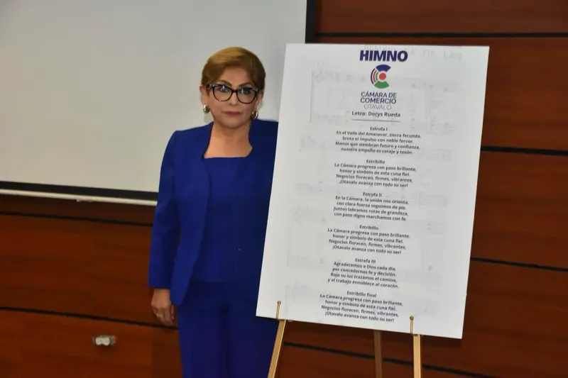 Autora del Himno de la Cámara de Comercio de Otavalo (2025). Foto © Dorys Rueda.