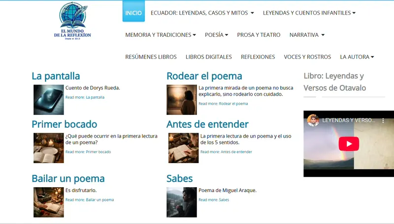 En 2013, mi esposo y yo, ambos maestros, vimos la necesidad de crear un sitio web gratuito y confiable para el público. Vivíamos un momento en el que la información abundaba, pero no siempre era accesible sin costo. Al mismo tiempo, consideramos fundamental contar con un espacio donde pudiera publicarse el trabajo que yo había recopilado e investigado desde 1980 en torno a las leyendas de Otavalo y del Ecuador.