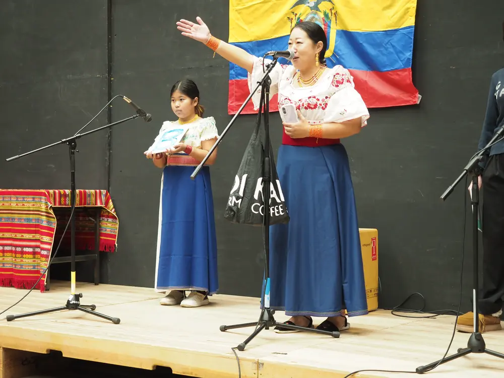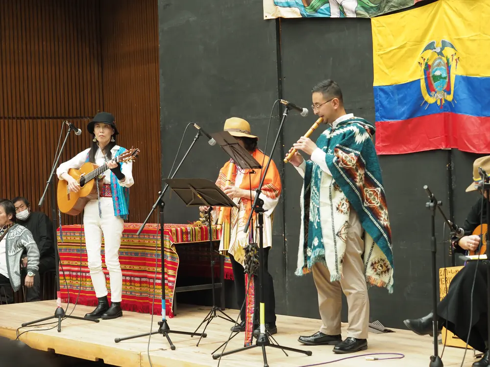 El Ecuador es conocido en esta parte de Japón gracias a la labor artística de Jaime Gramal. Es conmovedor ver a japoneses sentirse atraídos por la música de Otavalo. El afiche que aparece en el centro del auditorio revela la motivación para realizar esta celebración: “Festival de mi lindo Ecuador”. Otavalo no se olvida nunca.