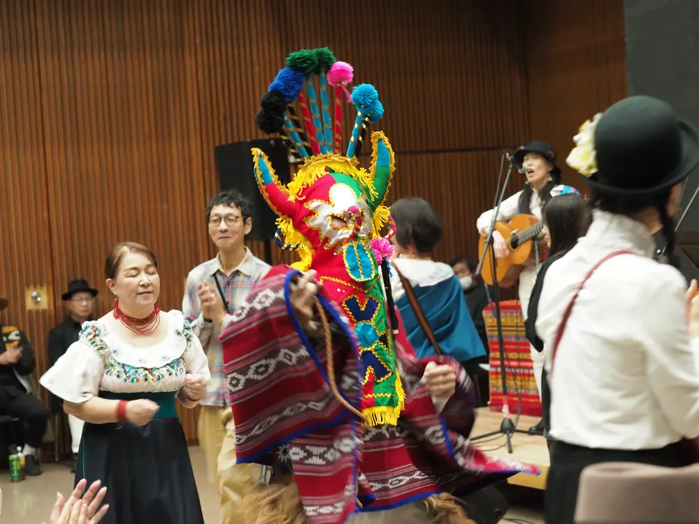 Aunque la gente japonesa suele ser recatada en su comportamiento, la audiencia acompañó entusiastamente desde el inicio con sus aplausos y gritos de ánimo. La melodía “Zapateando” atrajo a varios participantes a formar un círculo de baile en el centro del auditorio. Luego “Inti Raymi” sedujo a más gente a juntarse a tomar la capilla y bailar al estilo de la fiesta de San Juan.
