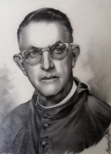 Reverendo José Nabor Rosero. Retrato. F. Raimundo Mora (técnica: lápiz sobre poliester).