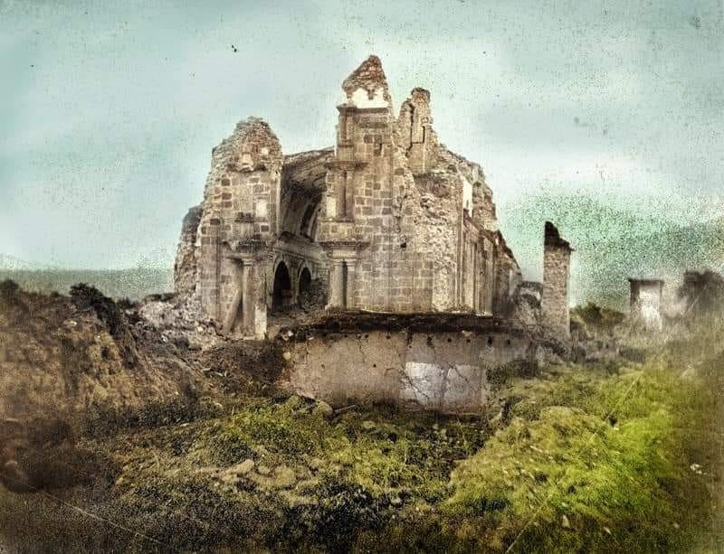 Ibarra. Ruinas de la Compañía de Jesús despues del terremoto de 1868. En este sitio está ubicado actualmente el Banco Pichincha (esquina sur oriental del parque Pedro Moncayo). Foto. Archivo particular.
