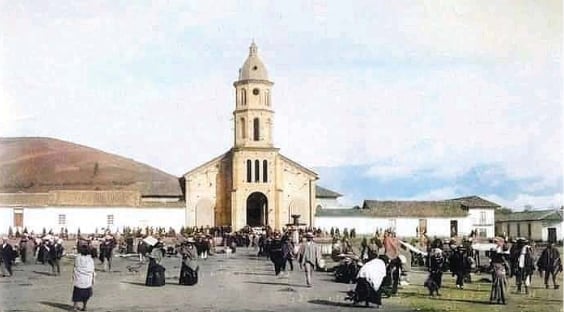 Domingo, 16 de agosto de 1868, hora primera más 15 minutos. Al súbito sacudón trepidatorio de aquella fría madrugada, siguieron los espantosos estruendos provocados por el derrumbamiento de iglesias, casas y tapias. El sobresalto y la confusión, precedieron a los gritos desgarradores y lamentaciones, el pánico se propagó entre los sobrevivientes. En la quinta de la familia Pérez Quiñonez, sucumbió la fábrica San Pedro recientemente construida, perecieron, su propietario y fundador, Don Pedro Pérez Pareja más doce personas, sobrevivieron su esposa y sus once hijos, entre los cuales encontraron a Fernando, Carlos (Jefe de Estado Mayor, Subsecretario del Ministerio de Guerra y Ministro de Hacienda cuando adulto) y al menor de ellos, Ulpiano, quien llegó a ser Obispo de Ibarra y Riobamba. Tan solo en nuestro cantón fueron en total 6000 las víctimas mortales, incluido el Vicario Foráneo Daniel Tapia. Removiendo los escombros con dificultad el padre José Rodríguez penetró en la iglesia para recoger la custodia y bendecir a los damnificados, entre maderos y adobes Nicolasa Jaramillo encontró intacta a la Virgen del Tránsito. Testigos silentes de esta terrible hecatombe son las campanas que siguen cumpliendo con su misión de acolitar el llamado de Dios. En sus bordes, son legibles las fechas de fundición: la grande, febrero de 1864 y la pequeña enero de 1855.